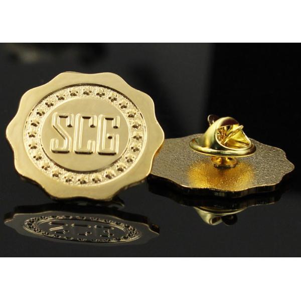 Zinc alloy stereoscopic frosted polish badge custom gold color metal hollow out logo words brooch pin Images |