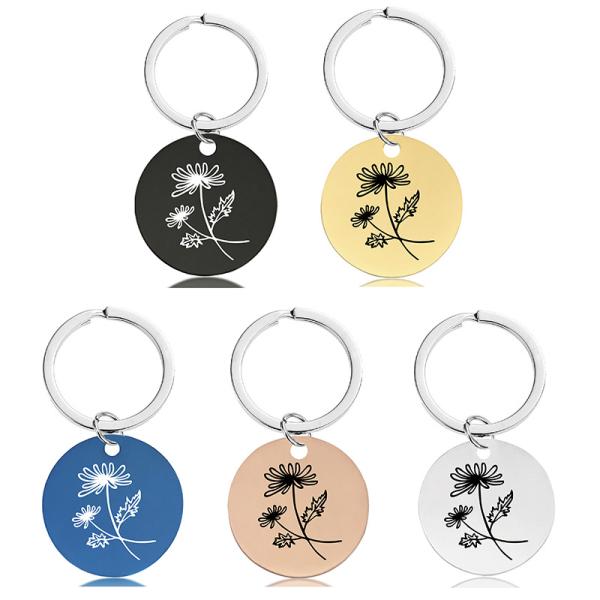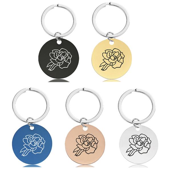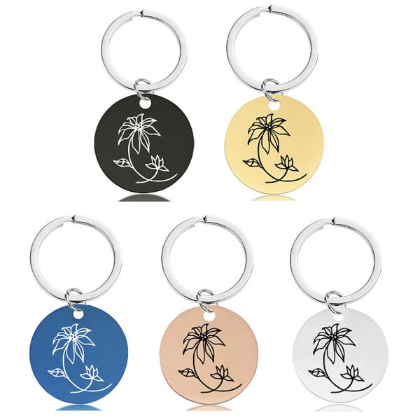 Stainless KeyKey chain pendant Month flower birthday holiday gift engraved metal key chain logo words Images |