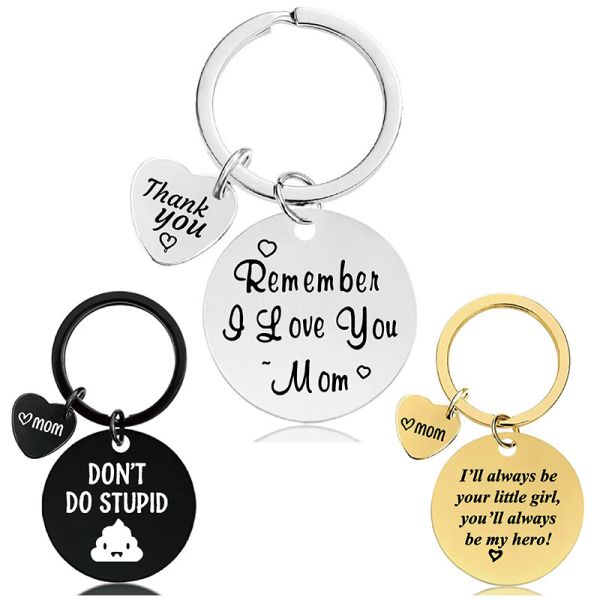 Key chain pendant Mother's Day gift Christmas stainless steel hanging ornaments engraved words logo key chain wholesale Images |