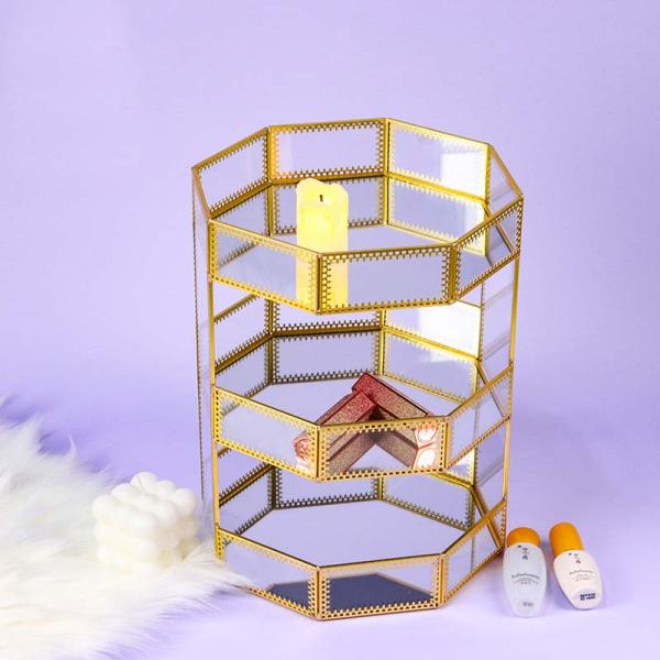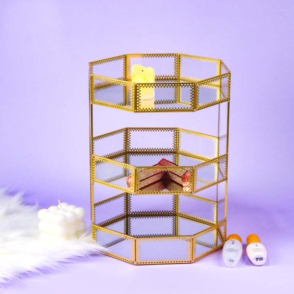 Glass artifact three-layer octagonal cosmetic shelving box storage Bedroom desktop jewelry storage box