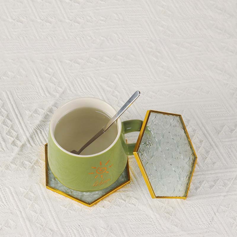 Glass Pad Begonia Glass Insulation Pad Copper Color Frame Glass Pad Water Coaster Small teapot pad Insulation